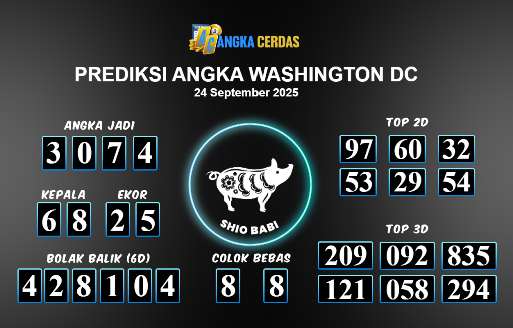 Prediksi Togel WASHINGTON DC untuk hari ini Rabu 24 September 2025, adalah salah