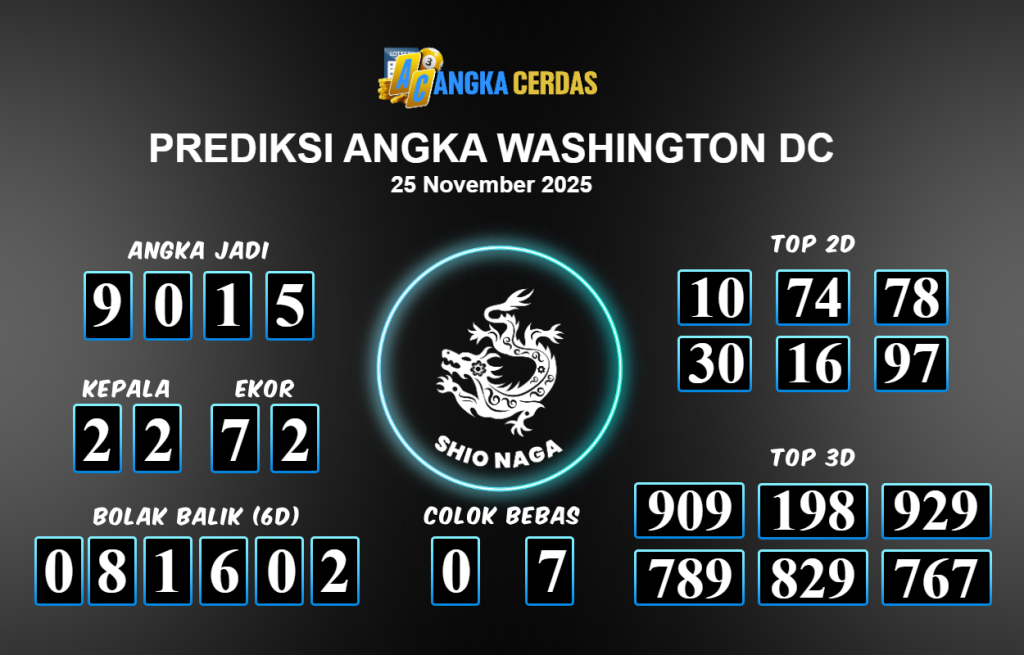 Prediksi Togel WASHINGTON DC untuk hari ini Selasa 25 November 2025, adalah salah