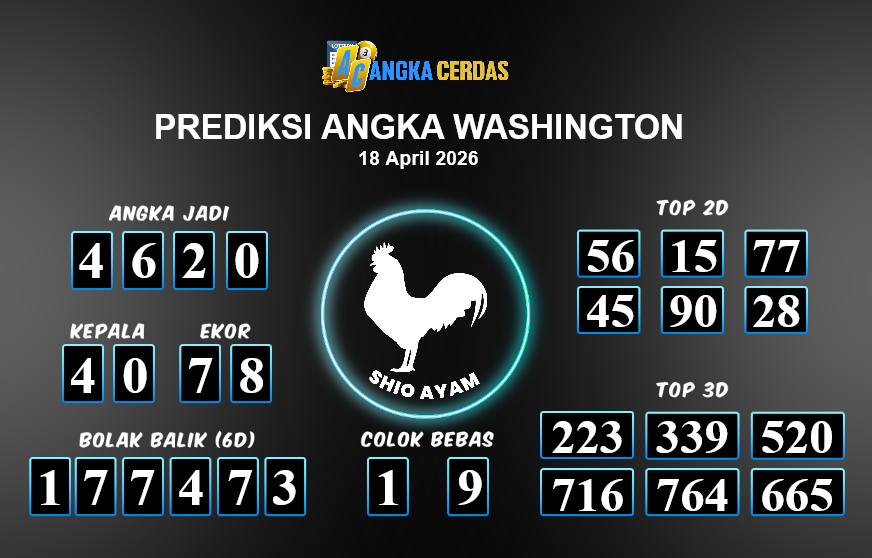 Prediksi Togel WASHINGTON untuk hari ini Sabtu, 18 April 2026, adalah salahsatu jenis togel yang memiliki banyak penggemar.Ini terutama ditujukanbagi Anda yang menyukai 4d/3d/2d. Prediksi Angka Cerdas yang kamisediakan,bisa