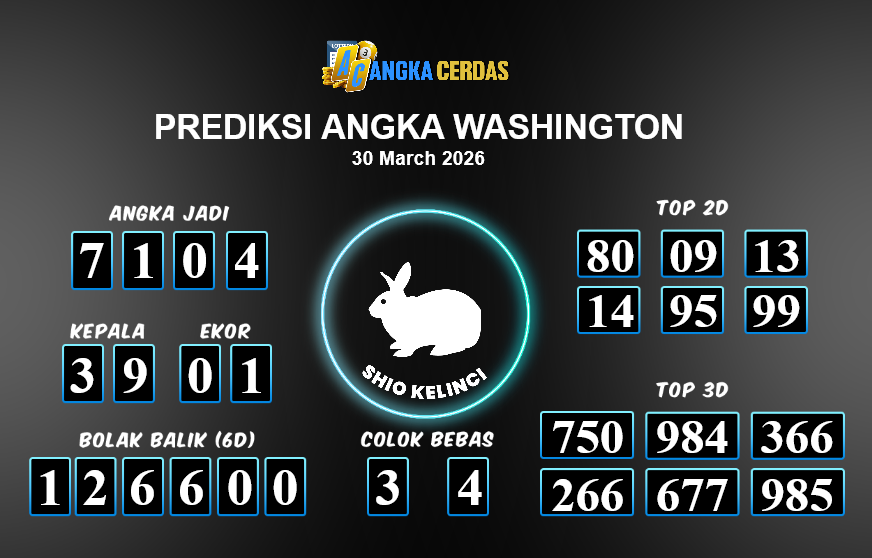Prediksi Togel WASHINGTON untuk hari ini Senin, 30 Maret 2026, adalah salah