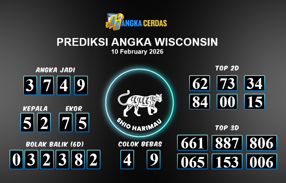 Prediksi Togel WISCONSIN untuk hari ini Selasa, 10 Februari 2026, adalah salah
