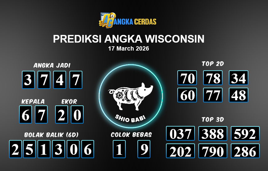 Prediksi Togel WISCONSIN untuk hari ini Selasa, 17 Maret 2026, adalah salah