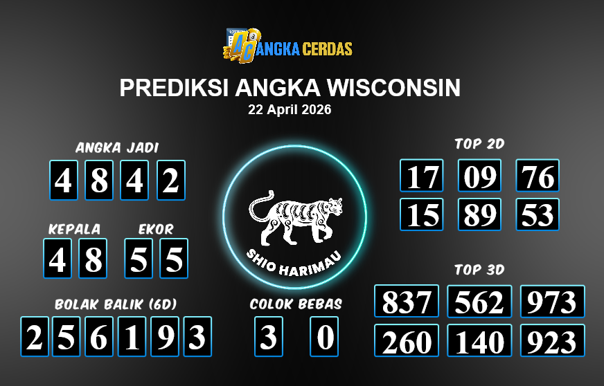 Prediksi Togel WISCONSIN untuk hari ini Rabu, 22 April 2026, adalah salahsatu jenis togel yang memiliki banyak penggemar.Ini terutama ditujukanbagi Anda yang menyukai 4d/3d/2d. Prediksi Angka Cerdas yang kamisediakan,bisa