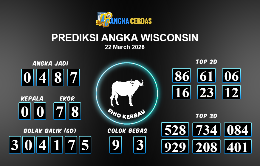 Prediksi Togel WISCONSIN untuk hari ini Minggu, 22 Maret 2026, adalah salah