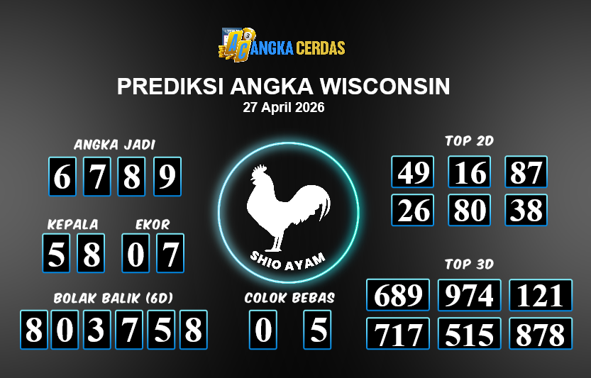 Prediksi Togel WISCONSIN untuk hari ini Senin, 27 April 2026, adalah salahsatu jenis togel yang memiliki banyak penggemar.Ini terutama ditujukanbagi Anda yang menyukai 4d/3d/2d. Prediksi Angka Cerdas yang kamisediakan,bisa