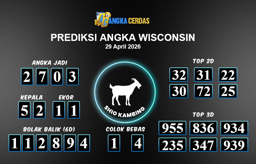 Prediksi Togel WISCONSIN untuk hari ini Rabu, 29 April 2026, adalah salahsatu jenis togel yang memiliki banyak penggemar.Ini terutama ditujukanbagi Anda yang menyukai 4d/3d/2d. Prediksi Angka Cerdas yang kamisediakan,bisa