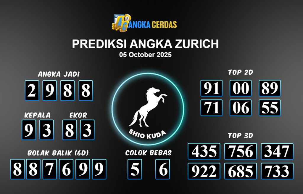 Prediksi Togel ZURICH untuk hari ini Minggu 05 Oktober 2025, adalah salah