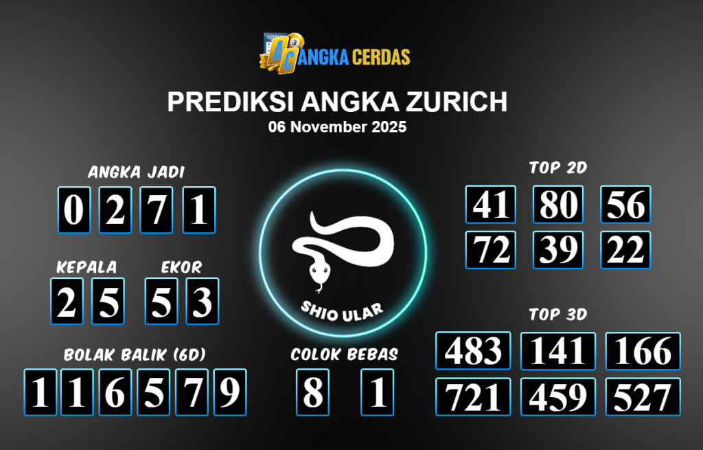 Prediksi Togel ZURICH untuk hari ini Kamis 06 November 2025, adalah salah