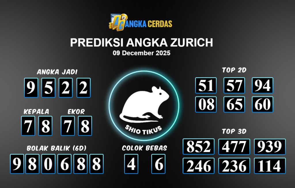 Prediksi Togel ZURICH untuk hari ini Selasa 09 Desember November 2025, adalah salah
