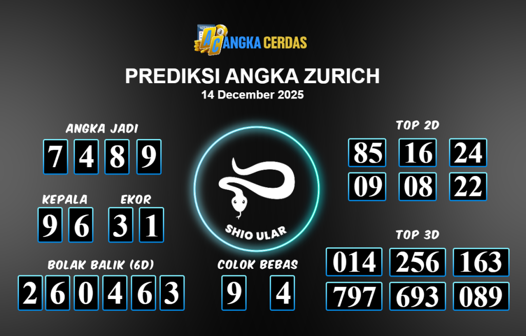 Prediksi Togel ZURICH untuk hari ini Minggu 14 Desember November 2025, adalah salah
