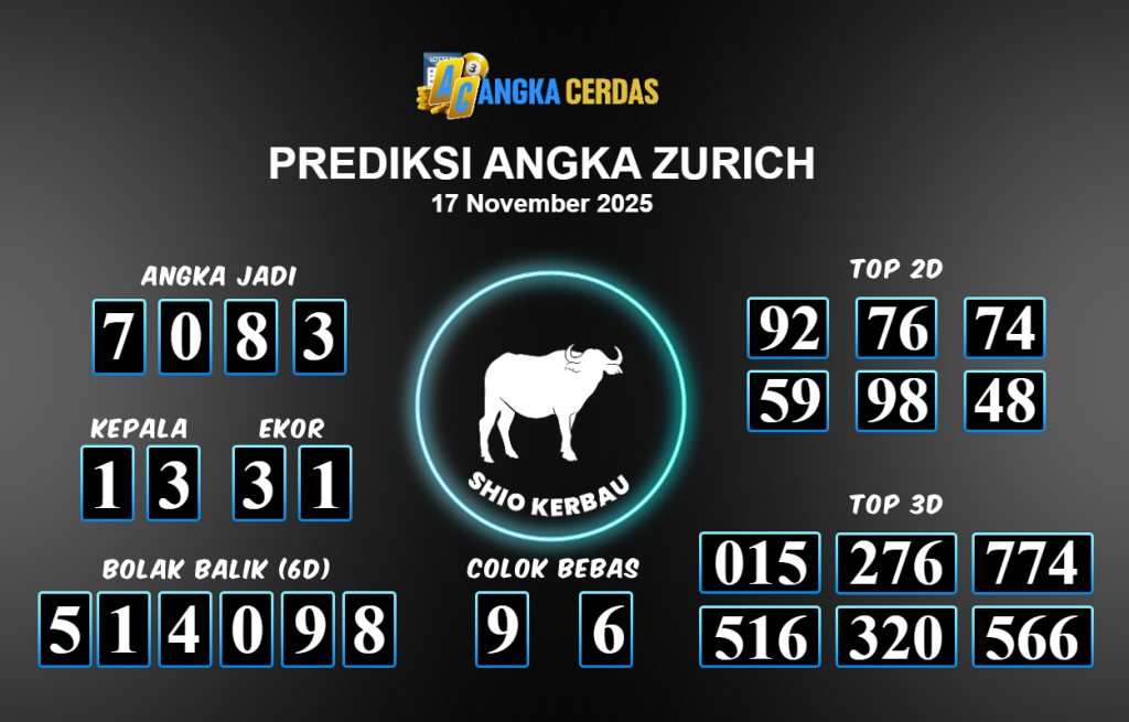Prediksi Togel ZURICH untuk hari ini Senin 17 November 2025, adalah salah