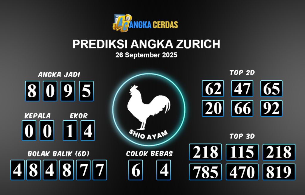 Prediksi Togel ZURICH untuk hari ini Jumat 26 September 2025, adalah salah