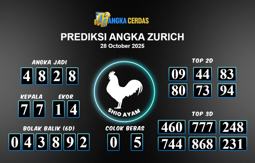 Prediksi Togel ZURICH untuk hari ini Senin 28 Oktober 2025, adalah salah